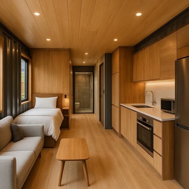 MAKSHAYL’s mobile containers are ultra-flexible units designed for quick setup and easy relocation perfect for personal living, remote offices, cafés, clinics, studios, or seasonal businesses.